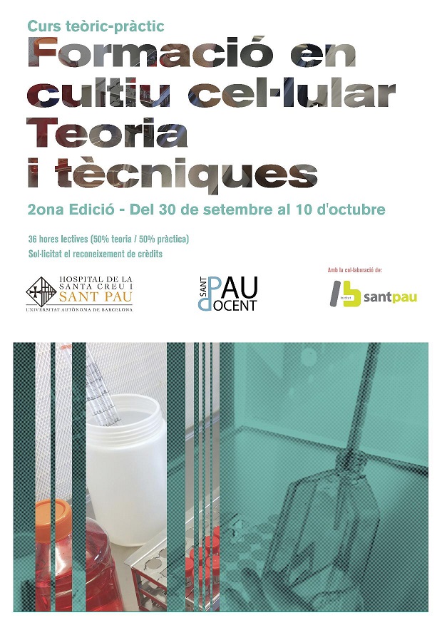 Estan obertes les inscripcions per apuntar-se al curs “Formació en cultiu cel·lular” que organitza el Servei de Microbiologia de Sant Pau (36 hores lectives, teòriques i pràctiques),que tindrà lloc del 30 de setembre al 10 d'octubre. Un aprenentatge tutelat, eminentment pràctic, per a que l’alumne adquireixi una experiència en la manipulació de cultius cel·lulars que li permeti instaurar les tècniques al seu laboratori. El curs està dirigit a tècnics de grau superior de laboratori, graduats en Ciències de la Salut o en Biociències interessats en el cultiu cel·lular.