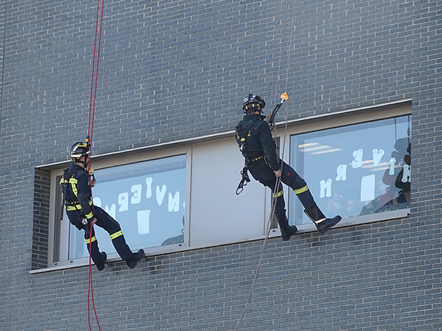 La Fundació d'Oncologia Infantil Enriqueta Villavecchia i el Servei de Pediatria de Sant Pau han organitzat avui, divendres 9 de febrer, una visita molt especial als petits de l’Hospital. La unitat de Bombers Solidaris de Barcelona han anat a veure els infants hospitalitzats i han preparat per a ells una demostració de cordes baixant per la façana de Pediatria. Per a l’ocasió tota la Unitat d’Hospitalització de Pediatria s’ha guarnit com si fos una estació de bombers.