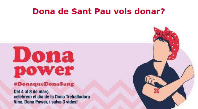Des de l’Hospital de Sant Pau ens sumem a la campanya que el Banc de Sang i Teixits de Catalunya ha posat en marxa aquesta setmana amb el lema #DonaqueDonaSang coincidint amb el Dia de la Dona. Per això animem a tot el nostre personal a donar sang i a promoure la donació.