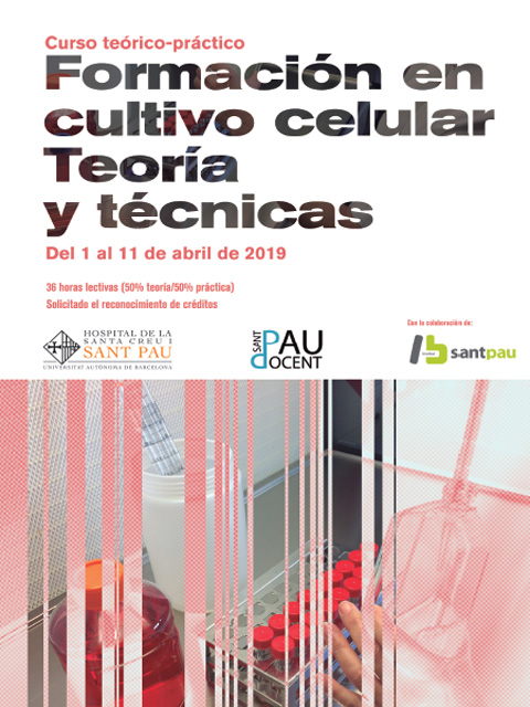 Ja estan obertes les inscripcions per apuntar-se al curs “Formació en cultiu cel·lular” que organitza el Servei de Microbiologia de Sant Pau (36 hores lectives, teòriques i pràctiques),que tindrà lloc de l’1 a l’11 d’abril. Un aprenentatge tutelat, eminentment pràctic, per a que l’alumne adquireixi una experiència en la manipulació de cultius cel·lulars que li permeti instaurar les tècniques al seu laboratori. El curs està dirigit a tècnics de grau superior de laboratori, graduats en Ciències de la Salut o en Biociències interessats en el cultiu cel·lular. Adjunt trobareu el programa.