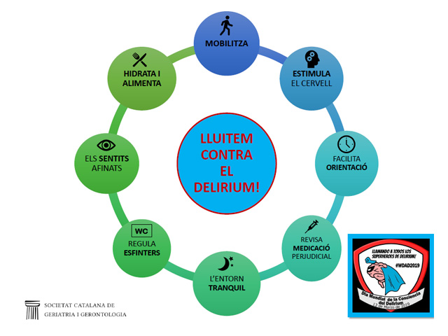 Sant Pau se suma a les activitats del Dia Mundial del Delírium, facilitant informació tant orientada a familiars com a professionals. El Delírium consisteix en un deteriorament ràpid de la funció cognitiva. Es caracteritza per: dificultat en la capacitat de concentració; desorientació; somnolència; agitació i ocasionalment presència d’al·lucinacions i/o ideació delirant. El Delírium acostuma a desenvolupar-se en hores o dies.