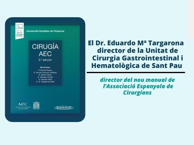 El Dr. Eduardo Mª Targarona, director de la Unitat de Cirurgia Gastrointestinal y Hematològica de Sant Pau ha estat un dels sis directors de la tercera edició del manual de l’Associació Espanyola de Cirurgians (AEC), publicada recentment en paper i en versió digital.