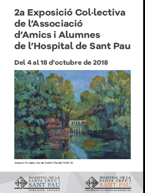 Del 4 al 18 d’octubre es podrà visitar la II Exposició col·lectiva de pintura i escultura de l’Associació Amics i Alumnes de l’Hospital de Sant Pau a l’antiga casa d’operacions del Recinte Modernista de Sant Pau. Enguany la mostra s’amplia i recull obres de diferents professionals de l’Hospital, a més de les habituals dels socis, i es podran contemplar diferents aspectes pictòrics i vàries obres d’escultura que ens permetran entrar en el seu món i veure la seva versió més creativa.