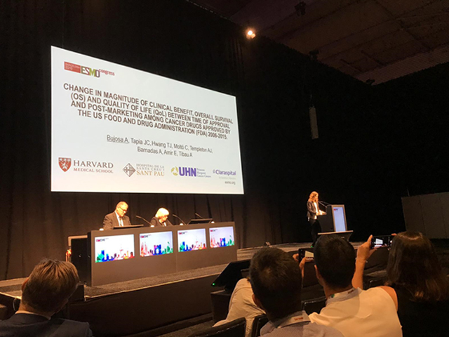 La Dra. Aida Bujosa, resident de quart any del Servei d’Oncologia Mèdica de Sant Pau, va fer una presentació oral al Congrés Europeu d'Oncologia Mèdica (ESMO 2019) celebrat recentment a Barcelona, sobre l'evidència científica disponible en termes de benefici clínic, supervivència global i qualitat de vida, dels fàrmacs oncològics, durant el període posterior a la seva aprovació.