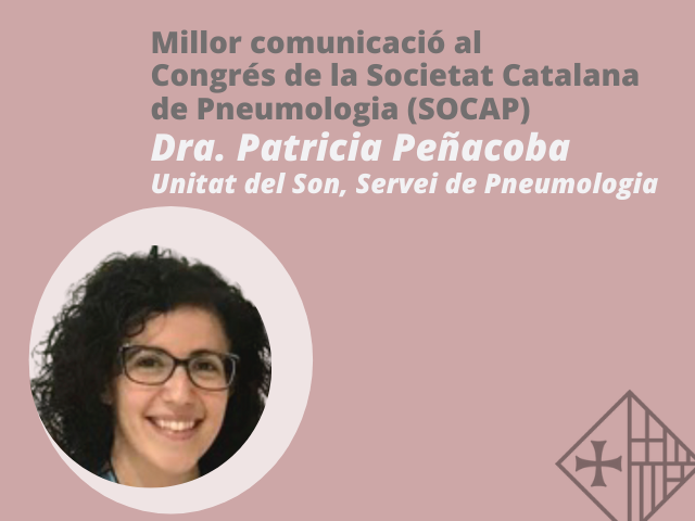 L'estudi multicèntric: “Model PASHOS: Una nova eina per al cribratge de la Síndrome d'Apnea-Hipopnea del Son en Atenció Primària”, presentat per la Dra. Patricia Peñacoba i dut a terme per la Unitat de Son del Servei de Pneumologia de Sant Pau, rep el premi a la millor comunicació del Congrés català anual, XXXVIII Diada Pneumològica de la Societat Catalana de Pneumologia (SOCAP).