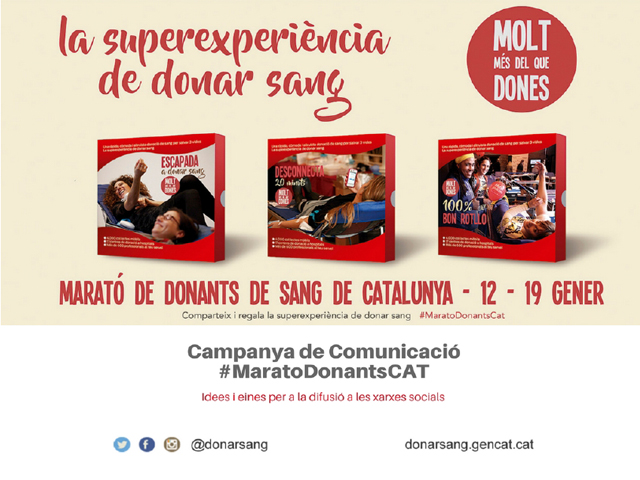 Suma’t a l’experiència de donar sang durant La Marató de Donants de Sang de Catalunya. Una iniciativa que se celebra sempre el gener, just després de les festes de Nadal, en un moment en que tradicionalment baixen les reserves. Enguany del 12 al 19 de gener a tots els punts de donació de Catalunya et proposen que triïs com vols que sigui la teva experiència de donar sang.