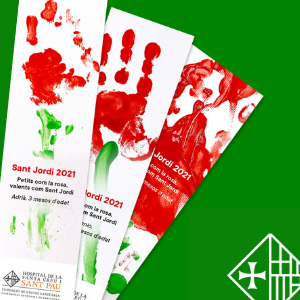 Els infants ingressats a l'Hospital de Sant Pau i els nens i les nenes integrats en el Programa de teràpia ocupacional del Servei de Medicina Física i Rehabilitació han preparat enguany punts de llibre solidaris per Sant Jordi. La iniciativa els permet explorar i treballar les seves capacitats amb les mans fent un exercici relacionat amb el seu aprenentatge i transformar el seu esforç terapèutic en un regal especial lligat a la Diada.