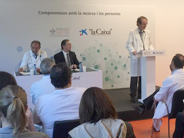 Sant Pau i la Fundació Bancària ”la Caixa” presenten l’acord de col·laboració que permetrà realitzar un assaig clínic dirigit a pacients de limfoma no Hodgkin B. Gràcies a aquest acord de col·laboració entre ”la Caixa” i l’Institut de Recerca de Sant Pau, enguany s’aplicarà la fase I d’aquest assaig en pacients refractaris als tractaments.