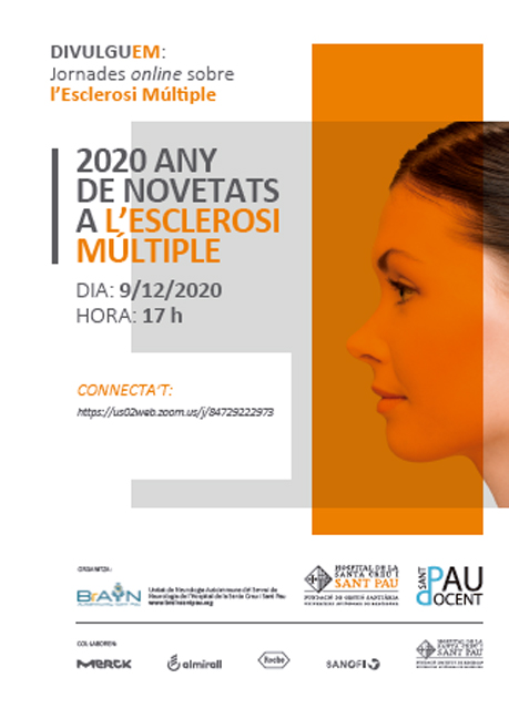 El proper 9 de desembre, a les 17 hores, tindrà lloc la xerrada divulgativa per a pacients “2020 any de novetats a l’esclerosi múltiple”, organitzada per la Unitat de Neuromuscular del Servei de Neurologia de Sant Pau. En aquesta ocasió, degut a la situació actual de pandèmia la sessió es farà online.