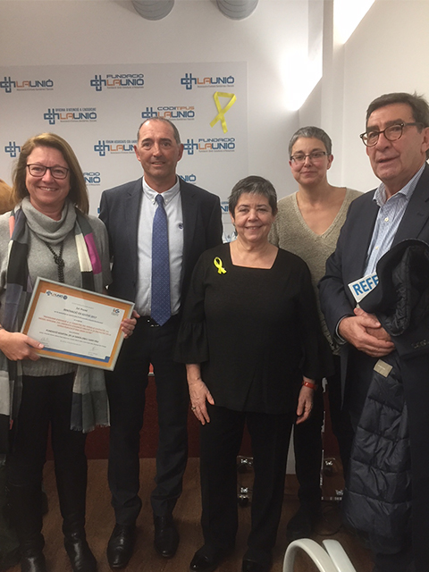 Ha recollit el guardó la Dra. Mireia Puig, directora del Servei d’Urgències de Sant Pau i Mary Arjones, secretària del Procés d’Atenció Urgent, durant l’acte institucional de cloenda de l’Assemblea General de La Unió, celebrat el 14 de desembre de 2017.